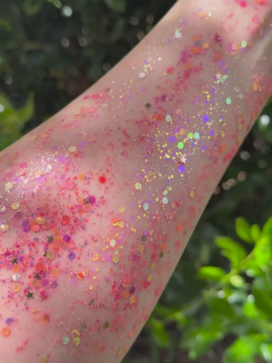 How to Use: We find this body glitter gel is best applied with a flat brush to pack on the glitter or dabbed on with a finger for a more spread out look. Dries down within a few minutes, does not stay tacky. AVOID DIRECT CONTACT WITH EYES. Can be applied on face, body, or hair!