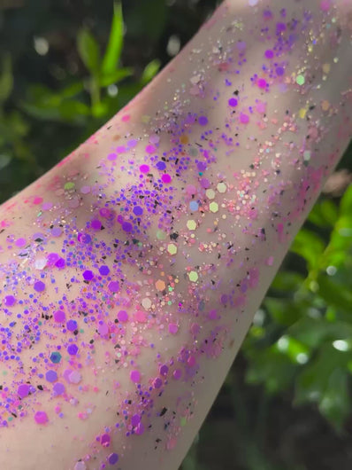 How to Use: We find this body glitter gel is best applied with a flat brush to pack on the glitter or dabbed on with a finger for a more spread out look. Dries down within a few minutes, does not stay tacky. AVOID DIRECT CONTACT WITH EYES. Can be applied on face, body, or hair!